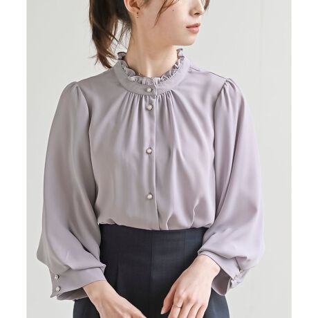 【2WAY】ふんわり袖とフリルネックのフェミニンブラウス