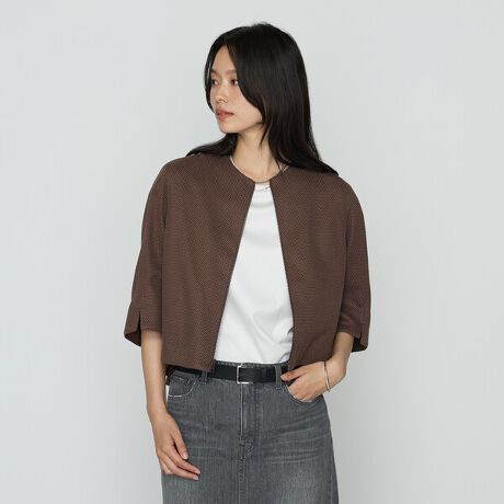 カッセンプリントブラウス(商品番号:01-17HK20-205)カッセンプリントスカート(商品番号:01-17FK09-205)の上にカーディガンの様に軽やかなスタイリングをお楽しみください。