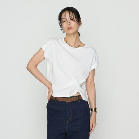 ポンチならではのはり感とマットな質感で一枚で着ても上質を感じるシルエットを表現しています。