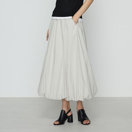 裾にギャザーを入れ裏地で吊ることでつくる、旬のバルーンシルエットです。