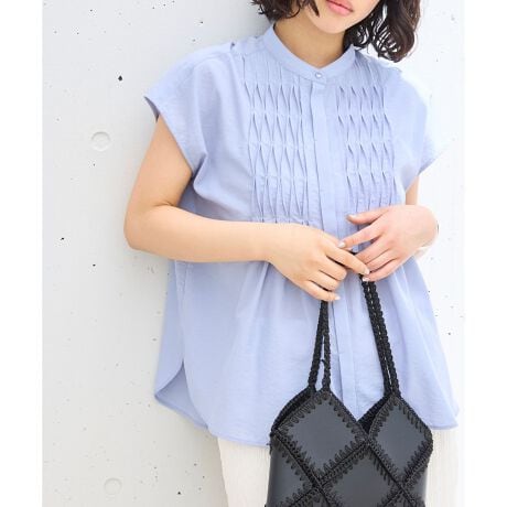 フロントのピンタックデザインが華やかな印象を与えてくれる1着。