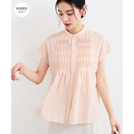 フロントのピンタックデザインが華やかな印象を与えてくれる1着。