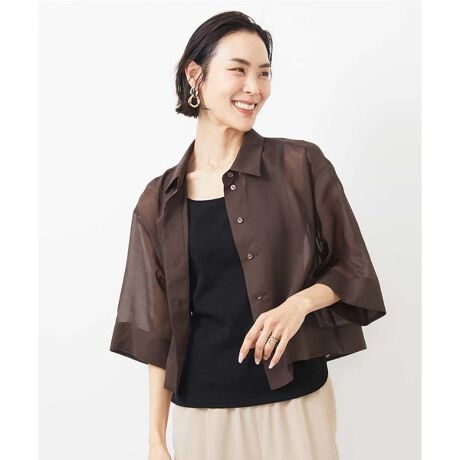ショート丈のバランスが軽やかで、トレンド感のある着こなしを演出。程よく透けるシアー素材が清涼感をプラスし、羽織るだけでこなれたスタイルが完成します。Tシャツに合わせればカジュアルな印象に、キャミソールやタンクトップを合わせれば、大人のシアーコーデに。