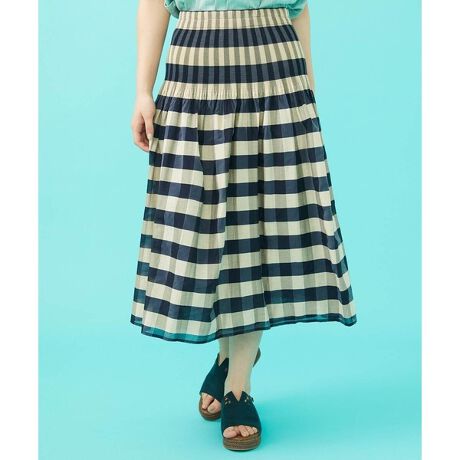 人気のスカートが再登場。ゴムシャーリングでウエスト部分はすっきり、腰から下はゆるやかなAラインシルエットです。合わせるトップスや、気分で変えられるリバーシブルタイプ仕様。表面はチェック、裏面はストライプと二つの柄がお楽しみいただけます。ウエストの伸縮性が高く、リラクシーな着用感も魅力に。※GJHDA34170のリピート商品です。