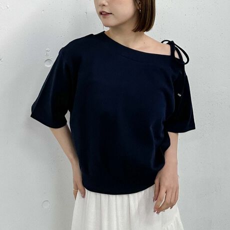 カジュアルなスウェットもワンショルで抜け感をプラス。