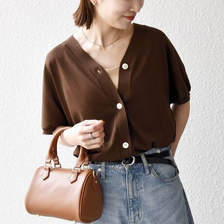 身頃から袖にかけてふんわりと広がるドルマンシルエットのニットカーディガン。