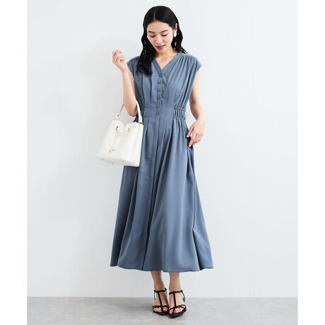 腰位置を高く見せてくれるようなウエスト設定と、肩のギャザーをたっぷりいれ上半身を華奢に見せれくれる様に細かいディテールに拘ったワンピースです。
