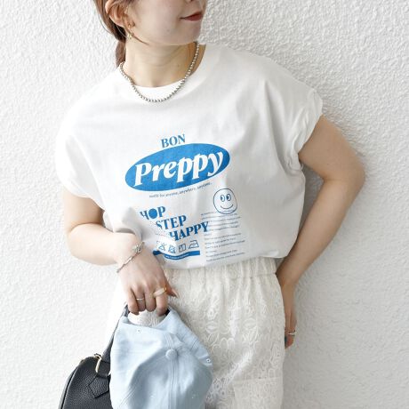SHIPS any:〈洗濯機可能〉PREPPY ロゴ プリント フレンチスリーブ TEE