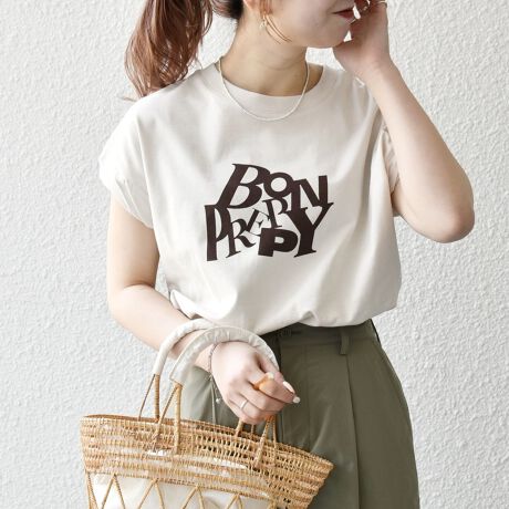 SHIPS any:〈洗濯機可能〉PREPPY ロゴ プリント フレンチスリーブ TEE