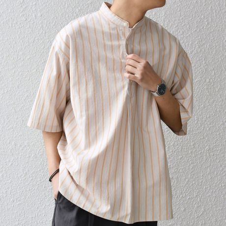 様々なストライプ柄で展開の、夏にピッタリなバンドカラーシャツ