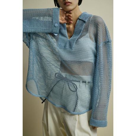 モデル身長166cm(FREEサイズ着用)【ACTIVE WEAR Collection】デイリー使いにはもちろん、公園やアウトドアシーンでの着用も想定してデザインされたアクティブウェアシリーズ。動きやすさを考えた機能性やシルエット、ディテールにこだわり、ファッショナブルに取り入れやすくミニマルに落とし込んだシリーズです。程よいハリ感と透け感が映える太番手の糸で編み立てたオーバーシルエットのメッシュシャツ。袖口が調整可能なワイドスリーブが特徴でスタイリングに抜け感をプラスしてくれます。シャツヘムでインもアウトもしやすい一枚です。500ISS30-2601(ACTIVE撥水ブルゾン)、500ISS30-2611(ACTIVE撥水ショートブルゾン)、500ISS31-2631(ACTIVE撥水ハーフパンツ)、500ISS31-2571(ACTIVE撥水パラシュートパンツ)とセットアップ着用可能。透け感あり、ストレッチなし。【お手入れ方法】手洗い可