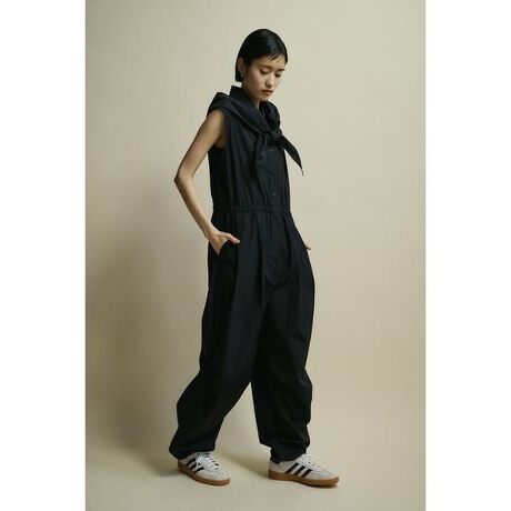 モデル身長166cm(Mサイズ着用)【ACTIVE WEAR Collection】デイリー使いにはもちろん、公園やアウトドアシーンでの着用も想定してデザインされたアクティブウェアシリーズ。動きやすさを考えた機能性やシルエット、ディテールにこだわり、ファッショナブルに取り入れやすくミニマルに落とし込んだシリーズです。タウンユースもできる、撥水加工を施したロンパース。動きやすいようにウエスト部分にはゴムと調整可能な紐を入れ、膝部分にはタックデティールを施した一枚。セットのスカーフは頭や首、襟下に巻いたりとアレンジ可能。ストレッチなし、透け感IVO裏地あり。【お手入れ方法】マシンウォッシュ可※この製品は表素材に撥水加工を施しており、雨などの水を弾く撥水効果があります。繰り返しの着用や洗濯により効果は弱くなっていきます。