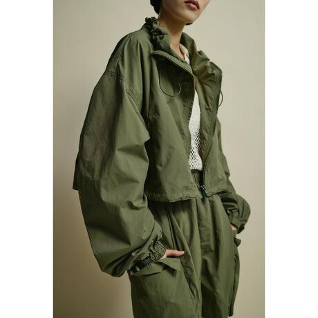 モデル身長166cm(FREEサイズ着用)【ACTIVE WEAR Collection】デイリー使いにはもちろん、公園やアウトドアシーンでの着用も想定してデザインされたアクティブウェアシリーズ。動きやすさを考えた機能性やシルエット、ディテールにこだわり、ファッショナブルに取り入れやすくミニマルに落とし込んだシリーズです。スタイリングに映えるショート丈でバランスのとりやすいブルゾン。ネックスタンドドロストデティールで、襟のように着用するのもおすすめ。バックスタイルも可愛い袖シャーリング仕様でバックスタイリングも可愛い一枚です。逆開ファスナーと裾口のスピンドルでスタイリング変化を楽しめます。動いても安心なコンシールファスナーポケット付き。500ISS30-2601(ACTIVE撥水ブルゾン)、500ISS30-2621(ACTIVEメッシュシャツ)、500ISS31-2631(ACTIVE撥水ハーフパンツ)、500ISS31-2571(ACTIVE撥水パラシュートパンツ)とセットアップ着用可能。透け感なし、ストレッチなし。【お手入れ方法】マシンウォッシュ可※この製品は表素材に撥水加工を施しており、雨などの水を弾く撥水効果があります。繰り返しの着用や洗濯により効果は弱くなっていきます。
