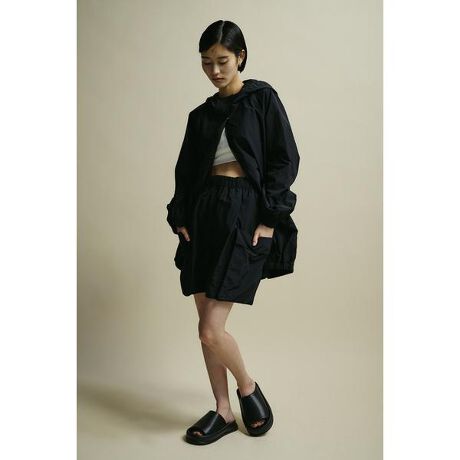 モデル身長166cm(Mサイズ着用)【ACTIVE WEAR Collection】デイリー使いにはもちろん、公園やアウトドアシーンでの着用も想定してデザインされたアクティブウェアシリーズ。動きやすさを考えた機能性やシルエット、ディテールにこだわり、ファッショナブルに取り入れやすくミニマルに落とし込んだシリーズです。フレアシルエットにこだわった撥水加工を施したハーフパンツ。フロントからバックにかけての立体ビックポケットデティールと広めな裾幅で美脚見せに導きます。ウエストゴム、調節可能な紐付き。500ISS30-2601(ACTIVE撥水ブルゾン)、500ISS30-2611(ACTIVE撥水ショートブルゾン)、500ISS30-2621(ACTIVEメッシュシャツ)とセットアップ着用可能。ストレッチなし、透け感IVOのみ裏地入り。【お手入れ方法】マシンウォッシュ可※この製品は表素材に撥水加工を施しており、雨などの水を弾く撥水効果があります。繰り返しの着用や洗濯により効果は弱くなっていきます。