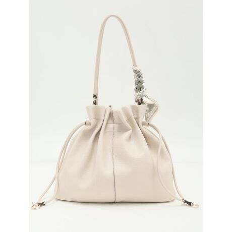 肩にかけやすいワンハンドルのショルダーバッグです。取り外し可能なスカーフと、口元の使いやすい巾着仕様がポイント。荷物の出し入れがスムーズな天巾着マグネット付き。