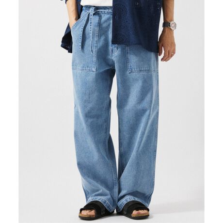 様々な加工を施した、こなれ感が出るワイドシルエットのベルテッドデニムベイカーパンツが登場!