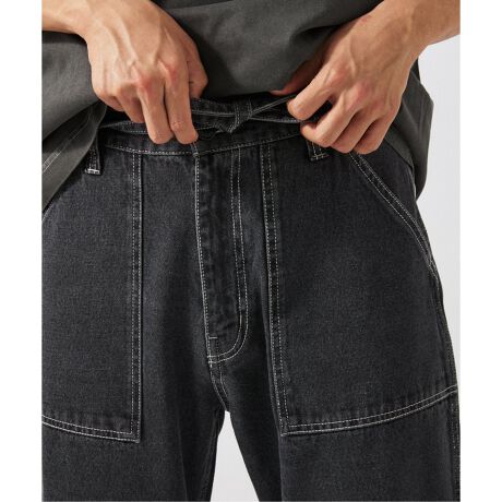 様々な加工を施した、こなれ感が出るワイドシルエットのベルテッドデニムベイカーパンツが登場!