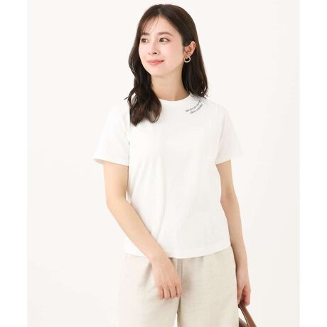 衿元に沿ったさりげないロゴデザインが大人に着こなしやすいコットンTシャツ。程よくコンパクトなシルエットがベーシックで使い勝手の良い一枚です。ホワイトは白地に黒ロゴ、ミントは白地にミント色のロゴと、刺繍糸カラー違いとなっています。