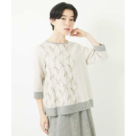 楊柳、刺繍、無地と3素材を使い合わせたこだわり生地が特徴のブラウスです。