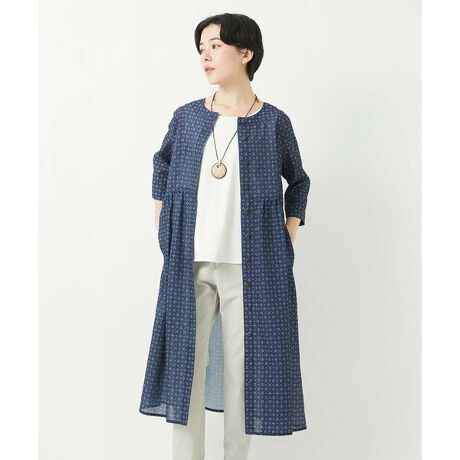 襟ぐりにヨーク切り替えがあり、きちんとした仕立てとなった小付き柄をプリントしたワンピースです。