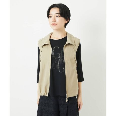 襟端にコードを入れて女性らしいポイントをプラスしたスポーティなデザインのベストです。ドローコードをキュッと絞ると丸みのあるフォルムとなり、シルエットの変化をお楽しみいただけます。ダブルファスナー仕様なので着方のアレンジが可能になっています。吸水速乾・撥水性・通気性の多機能素材なので、これからの梅雨時にもおすすめしたい一着。単品使いはもちろん、同シリーズのスカート[PHHGB40330]とのセットアップもおすすめです。