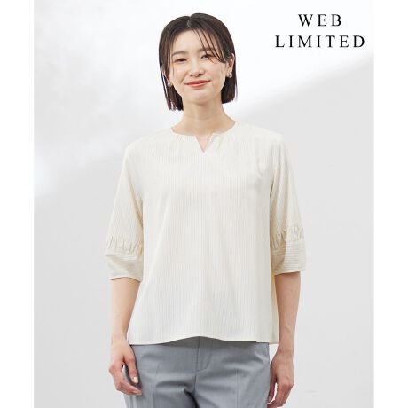 【WEB限定・洗える】ストライプ キーネック ブラウス