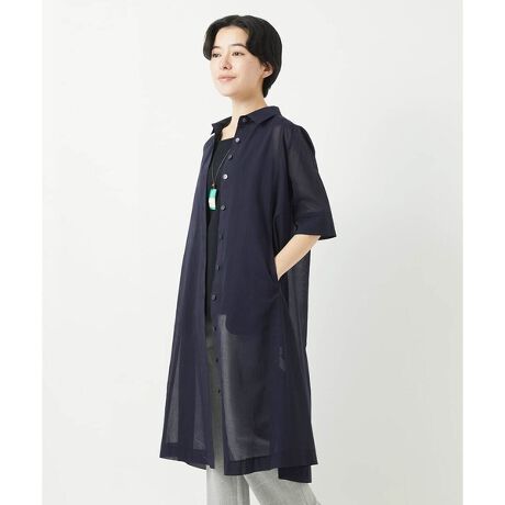 シアー感とハリ感あるコットンオーガンジーを使用したシャツワンピース。