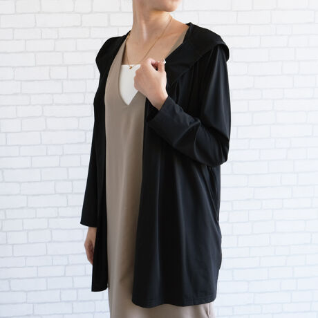 さらっとした気持ちのいい肌触りです。M サイズ(白)を購入しました。身長152cmの私が着るとちょうどお尻が隠れるくらいの長さで、袖の長さもピッタリ!とても気に入りました。冷房で冷え過ぎる時なんかはすごく良いと思いました。