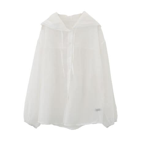 [型番:mw00273]カジュアルながらも洗練された印象を与えるビッグフードシアーシャツパーカーシアーシャツ素材を使用しているため、軽やかで風通しも良好です。さらに、シャツ部分が透け感を演出し、レイヤードスタイルを楽しむことができます。カジュアルにもキレイ目にも着こなせる一枚です。