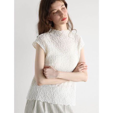 シュリンクレースノースリーブトップス