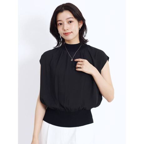 セミハイネック異素材コンビトップス