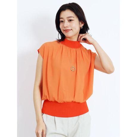ほどよい透け感のシアーとドライタッチなニットをドッキングしたトップス。