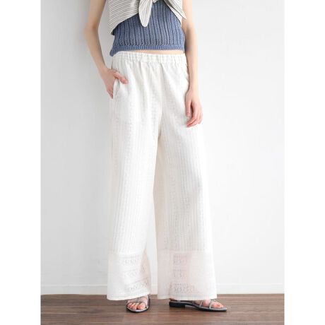 華やかなレースパンツとストライプ柄のパンツがドッキングされたデザイン性の高い一枚。
