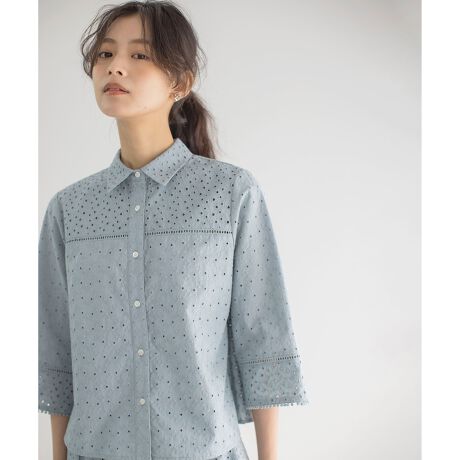 エンブロイダリーレース襟付 ブラウス