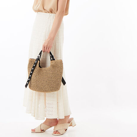 ペーパーと少し光沢感のあるポリプロピレン糸を引きそろえて編んだクロッシェトート。