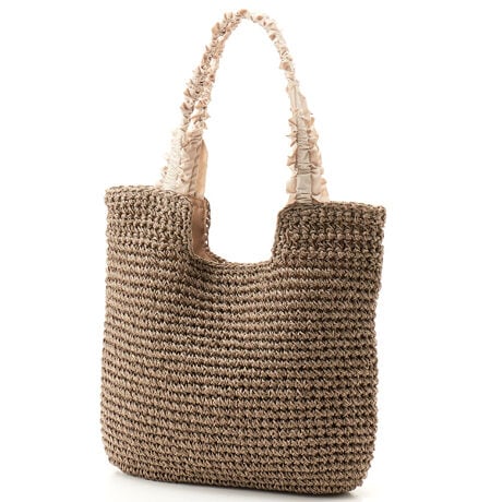 クシュっとギャザーを寄せたハンドルがポイントのクロッシェカゴバッグ。
