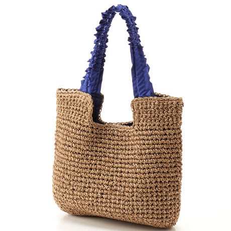 クシュっとギャザーを寄せたハンドルがポイントのクロッシェカゴバッグ。