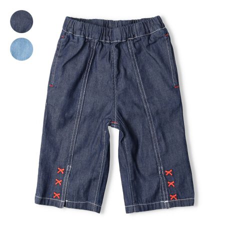 ネイビーにはリボン、ブルーにはハートの刺繍が裾に入った女の子らしいデニムのハーフパンツ。裾がスリット入りで動きやすい6分丈。両脇、後ろにもポケットがあるので、通学にもオススメ!【アイテム】ナチュラル シンプル ベーシック フェミニン ガーリー 無地 カジュアル お洒落 オシャレ かわいい 大人可愛い 普段着 デイリーウェア お出かけ着 お外着 外遊び着 ハーフパンツ 短パン 半パン 半ズボン ボトムス 子ども こども 女児 女の子 ガールズ キッズ ベビーサイズ トドラーサイズ 幼稚園 保育園 小学校 通園 通学 小学生 2024年春夏物新作 丸高衣料 紺色 青色 水色 りぼん Gパン ジーンズ ジーパン コットン100% 綿100%