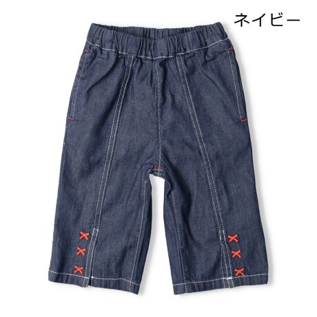 ネイビーにはリボン、ブルーにはハートの刺繍が裾に入った女の子らしいデニムのハーフパンツ。裾がスリット入りで動きやすい6分丈。両脇、後ろにもポケットがあるので、通学にもオススメ!【アイテム】ナチュラル シンプル ベーシック フェミニン ガーリー 無地 カジュアル お洒落 オシャレ かわいい 大人可愛い 普段着 デイリーウェア お出かけ着 お外着 外遊び着 ハーフパンツ 短パン 半パン 半ズボン ボトムス 子ども こども 女児 女の子 ガールズ キッズ ベビーサイズ トドラーサイズ 幼稚園 保育園 小学校 通園 通学 小学生 2024年春夏物新作 丸高衣料 紺色 青色 水色 りぼん Gパン ジーンズ ジーパン コットン100% 綿100%
