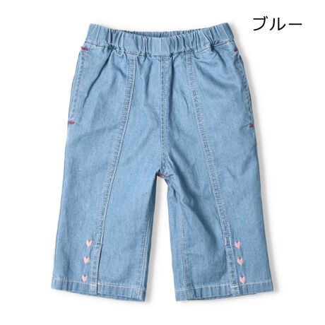リボン・ハート刺繍6分丈デニムハーフパンツ