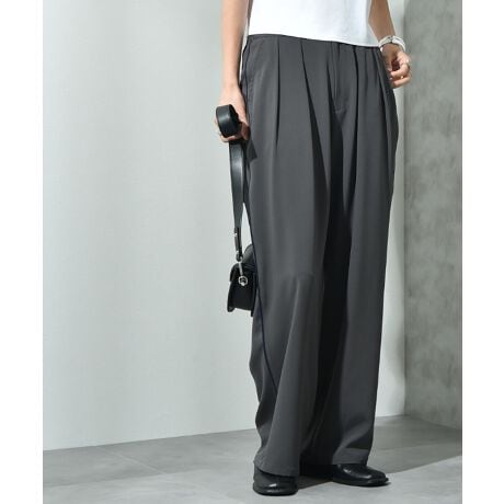 カジュアルなスタイルになりがちなこれからのシーズンに活躍する大人のパンツ!さらりと肌触りの良い素材で、シワになりにくくきれいなシルエットがキープできる優れものです。サイドラインが縦のシルエットを強調してくれスタイルアップ効果は抜群です。シンプルなトップスを合わせるだけでこなれ感が演出できる夏のパンツです。