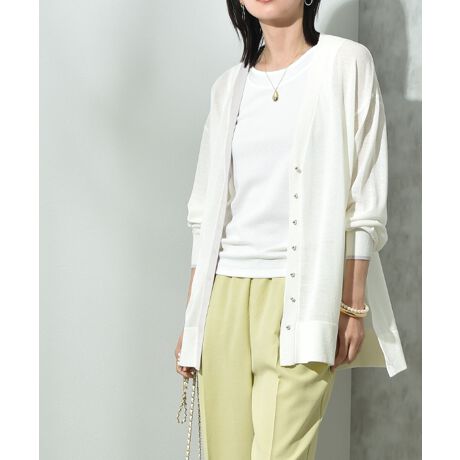 いつものカジュアルスタイルに合わせやすいラメシアー素材のカーディガン。上品な光沢感が今っぽく、合わせるアイテム次第でオフィスにもお勧めな1枚です。