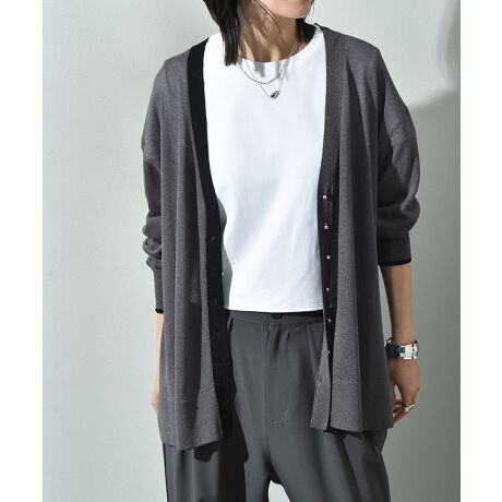 いつものカジュアルスタイルに合わせやすいラメシアー素材のカーディガン。上品な光沢感が今っぽく、合わせるアイテム次第でオフィスにもお勧めな1枚です。