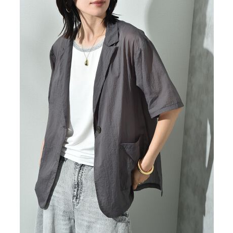 上品なシアー感が美しく、カジュアルなアイテムの中に大人の余裕を感じさせてくれます。また今季トレンドの半袖もポイント◎空気を纏っているかのようなエアー感と、シャツ感覚で羽織れる軽さで肩の力を抜いて着られるジャケットです。