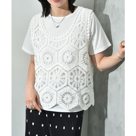 【actuel】クロシェベスト+TシャツSET