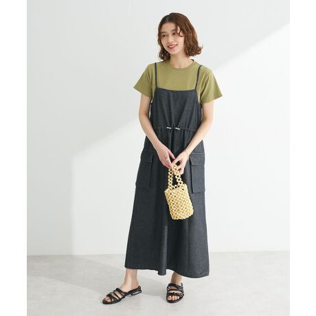 コットン混のナチュラルなデニム素材で仕立てたキャミソールワンピース。ゆったりめのボックスシルエットはウエストのドロストコードでシルエットアレンジも楽しめます。両サイドにはワークテイストなカーゴポケットを加え、よりラフでカジュアルな印象に。合わせるインナー次第でロングシーズン愛用頂けるおすすめのアイテムです。透け感[なし]