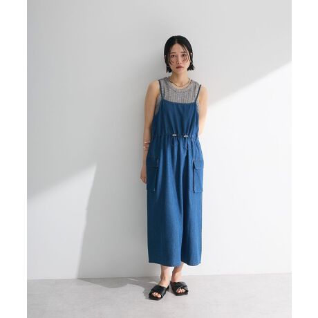 コットン混のナチュラルなデニム素材で仕立てたキャミソールワンピース。ゆったりめのボックスシルエットはウエストのドロストコードでシルエットアレンジも楽しめます。両サイドにはワークテイストなカーゴポケットを加え、よりラフでカジュアルな印象に。合わせるインナー次第でロングシーズン愛用頂けるおすすめのアイテムです。透け感[なし]
