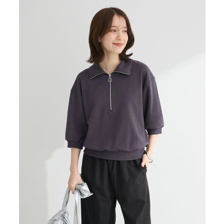 コットン混のスムースタッチなジャージー生地で着心地優しいプルオーバー。襟付きハーフジップ仕様でメタルを効かせたカジュアルなデザインです。ふんわりとした幅のある七分袖とリブで切り替えたヘムラインがメリハリあるシルエットに。コンパクト丈で着合わせしやすく、様々なボトムと合わせて頂けるおすすめのアイテムです。透け感[なし]