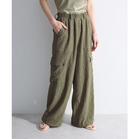 花柄カットレースのナチュラルな雰囲気が魅力的なデザインパンツ。カーゴタイプでフェミニンからカジュアルなスタイルまで幅広く合わせていただけます。ゆとりのある素材感で快適な穿き心地なのも嬉しいポイント。様々なトップスと相性が良く、デイリーからお出かけシーンまで活躍するアイテムです。透け感[ややあり]
