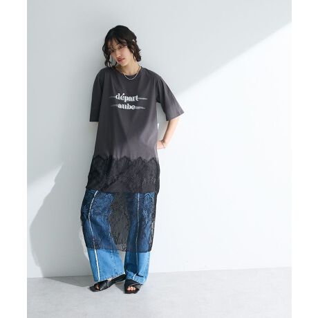 裾レースドッキングカットロゴチュニック